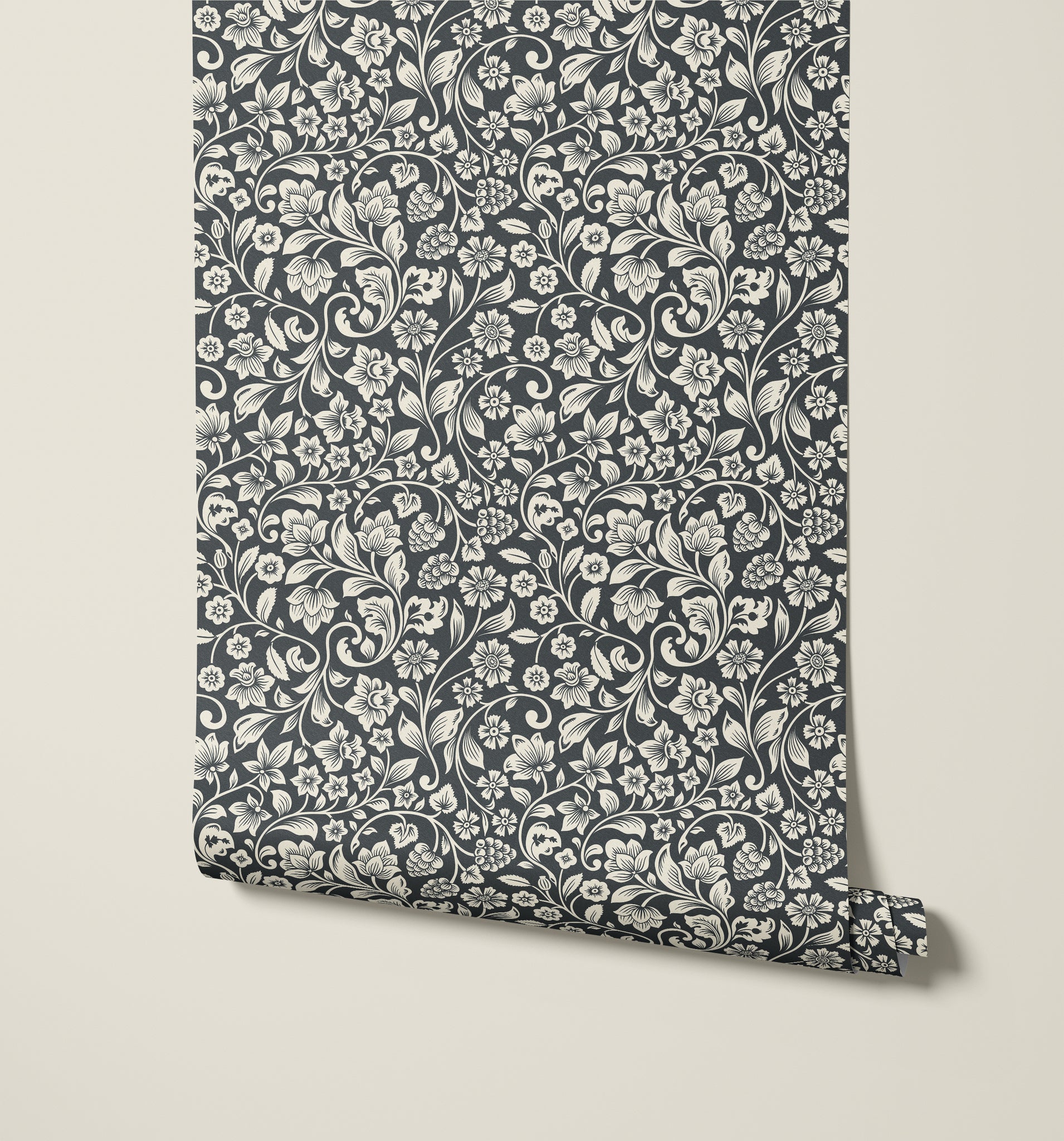 This decorative Arts & Crafts pattern is modernised by its bold use of inverted colour for a design that is perfect for maximalist styles. Developed in predominantly rich and vivid colour ways, the design is not for the faint hearted.