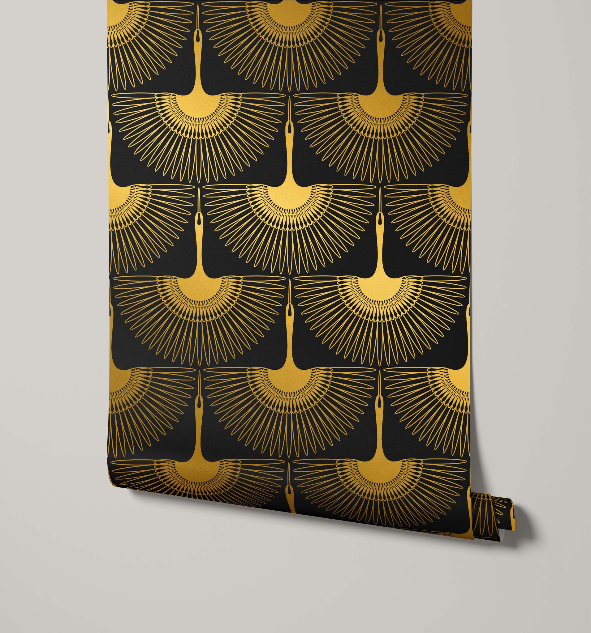 Elevate your interior with the timeless elegance of our Art Deco crane wallpaper. Inspired by the opulence of the Roaring Twenties, this captivating design showcases graceful cranes amidst geometric motifs. Whether adorning a living room, bedroom, or dining area, this crane wallpaper brings sophistication and intrigue to your decor.