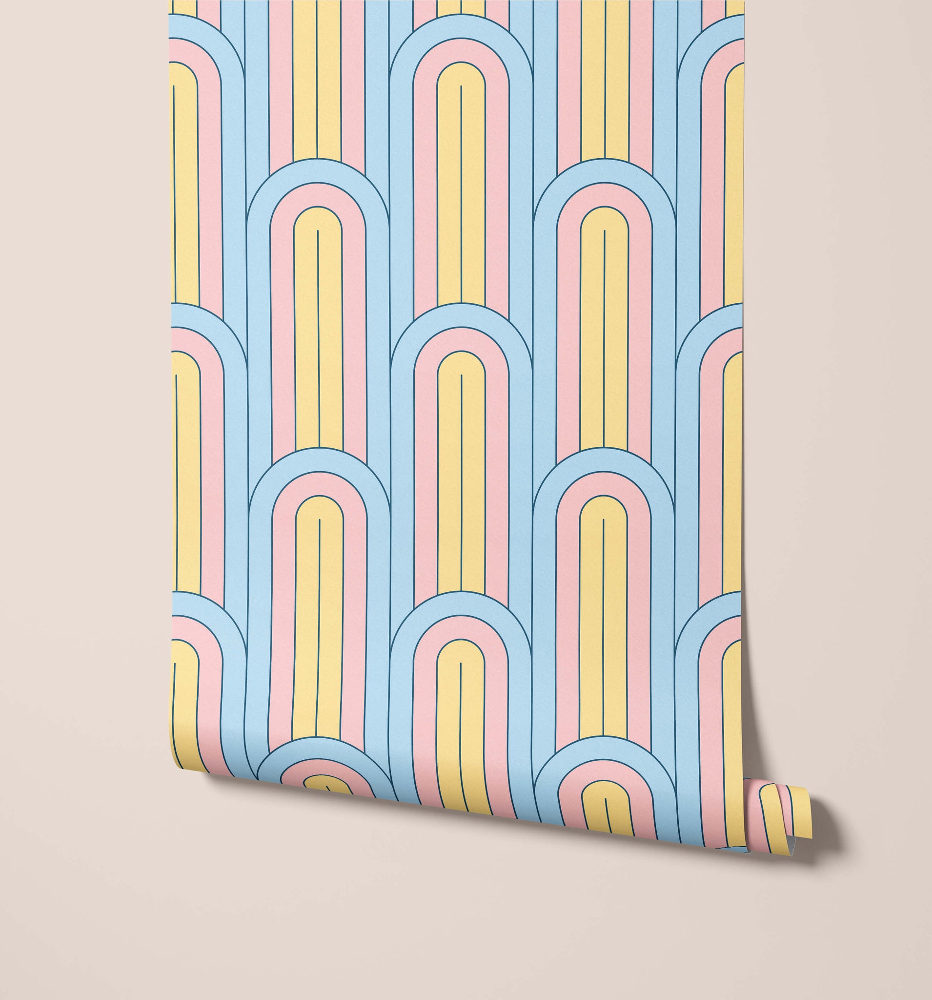Ce papier peint coloré en forme d'arche est un ajout amusant et vibrant à n'importe quelle pièce. Nous proposons différents coloris, allant de variations d'une seule couleur à des combinaisons de couleurs saisissantes.