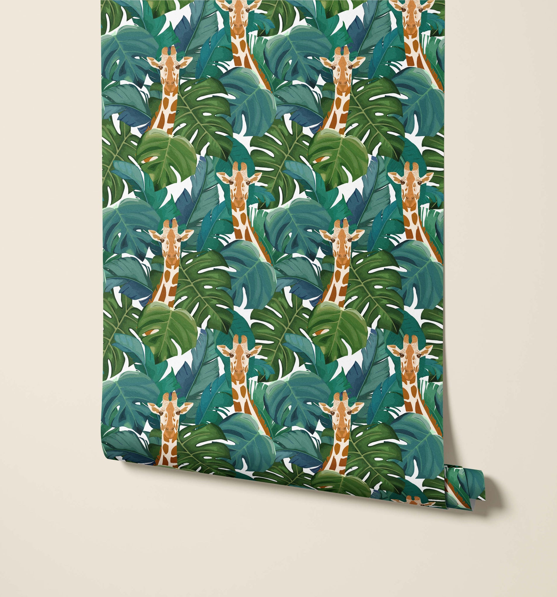 Notre papier peint girafe tropicale est idéal pour apporter un sentiment de joie dans votre maison. Lorsque vous vous immergez dans ce motif vibrant, un mélange luxuriant de feuilles tropicales et de girafes gracieusement représentées vous transporte dans un royaume de paradis tropical.