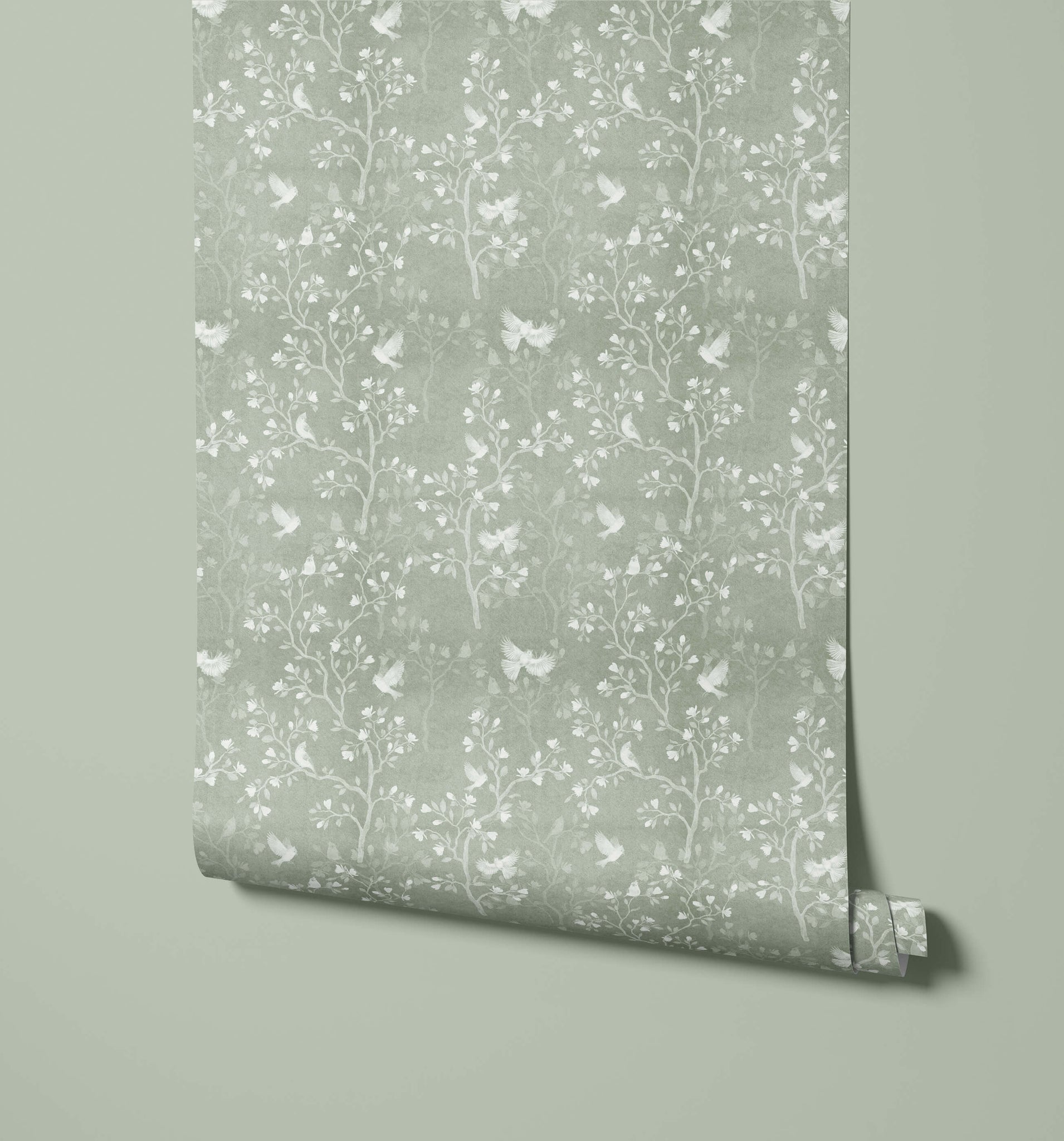 Le papier peint Silhouette d'oiseaux apporte un charme doux à n'importe quel espace, avec sa représentation délicate d'oiseaux au repos et en vol parmi des branches gracieuses. La qualité subtile, presque éthérée, du motif crée une atmosphère paisible et apaisante, les contours doux des oiseaux et du feuillage semblant se fondre dans l'arrière-plan. L'interaction entre la beauté de la nature et une élégance raffinée et discrète fait de ce papier peint un choix intemporel. Ses tons sourds et sa silhouette détaillée offrent une grande polyvalence, rehaussant les intérieurs modernes et traditionnels d'un sentiment de tranquillité et de grâce naturelle.