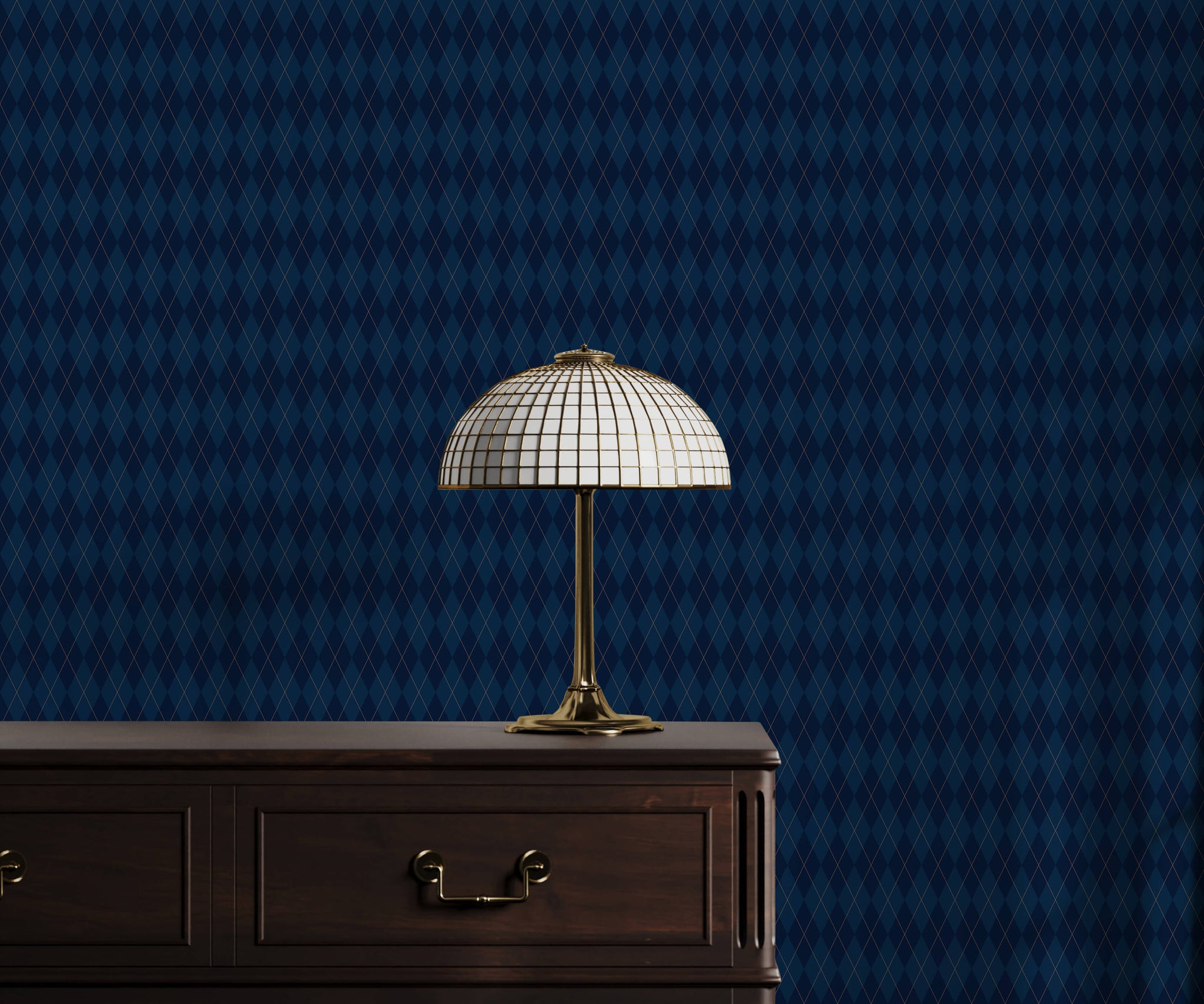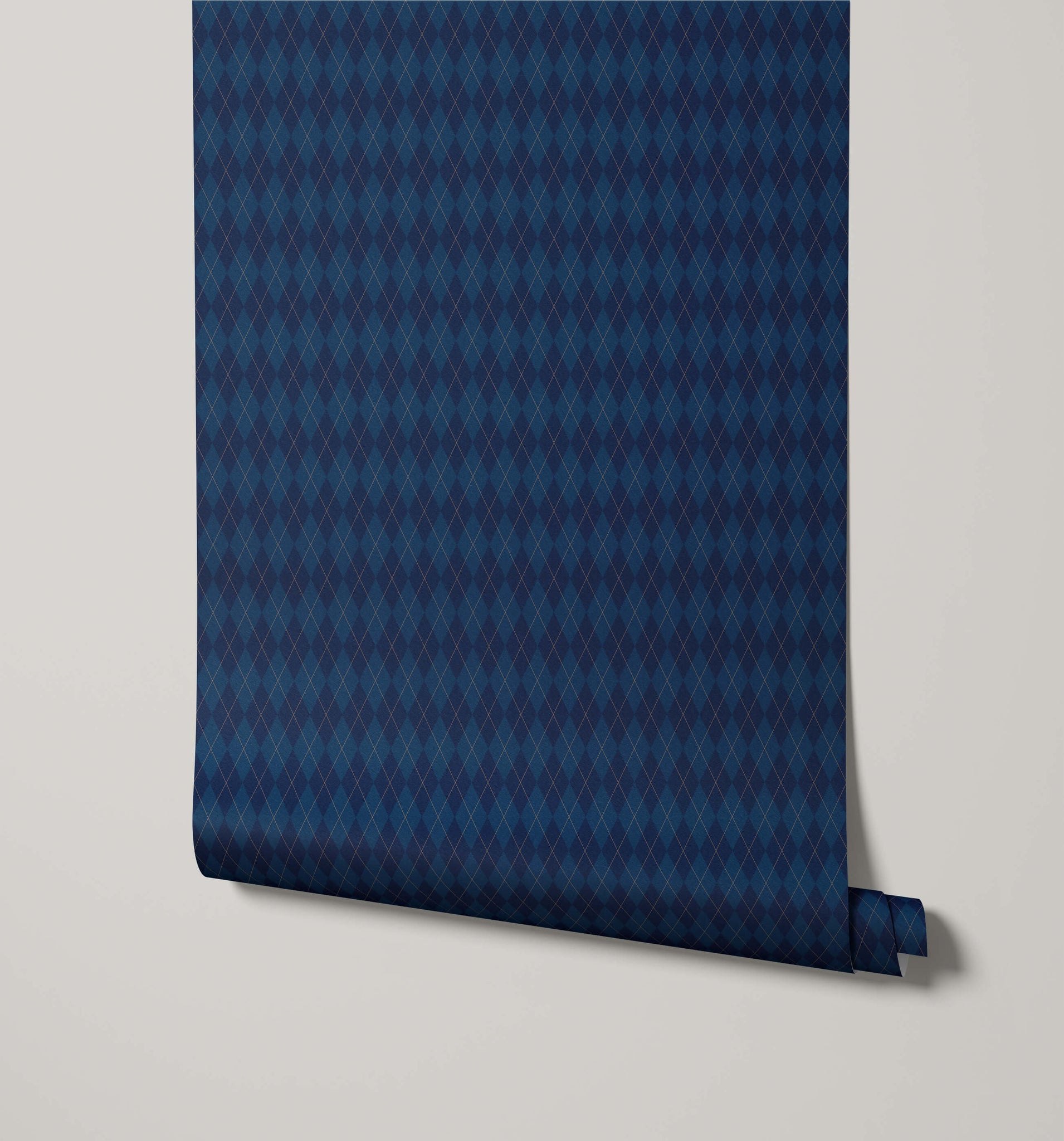 The density and precision of the argyle pattern wallpaper make it an excellent choice for creating a cozy, preppy, or traditional ambiance in a study, den, or bedroom. This complex geometric motif offers a dynamic yet ordered backdrop, ensuring the wall covering provides depth and visual interest without overwhelming the room's overall aesthetic.