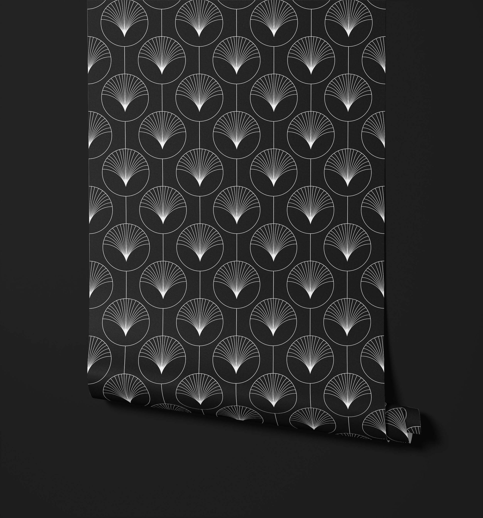 Art deco circle wallpaper brings a sophisticated, geometric charm to any room, with its repeating pattern of circular fan-like shapes that echo the iconic style of the Art Deco period. The clean, symmetrical design captures a sense of elegance and modernity, with each circle radiating fine lines that create a visual depth. This wallpaper is ideal for adding a bold, yet refined, statement to your space, with its sleek lines and minimalist aesthetic. Perfect for those seeking a timeless and luxurious feel, it beautifully complements contemporary interiors with a subtle nod to vintage glamour.