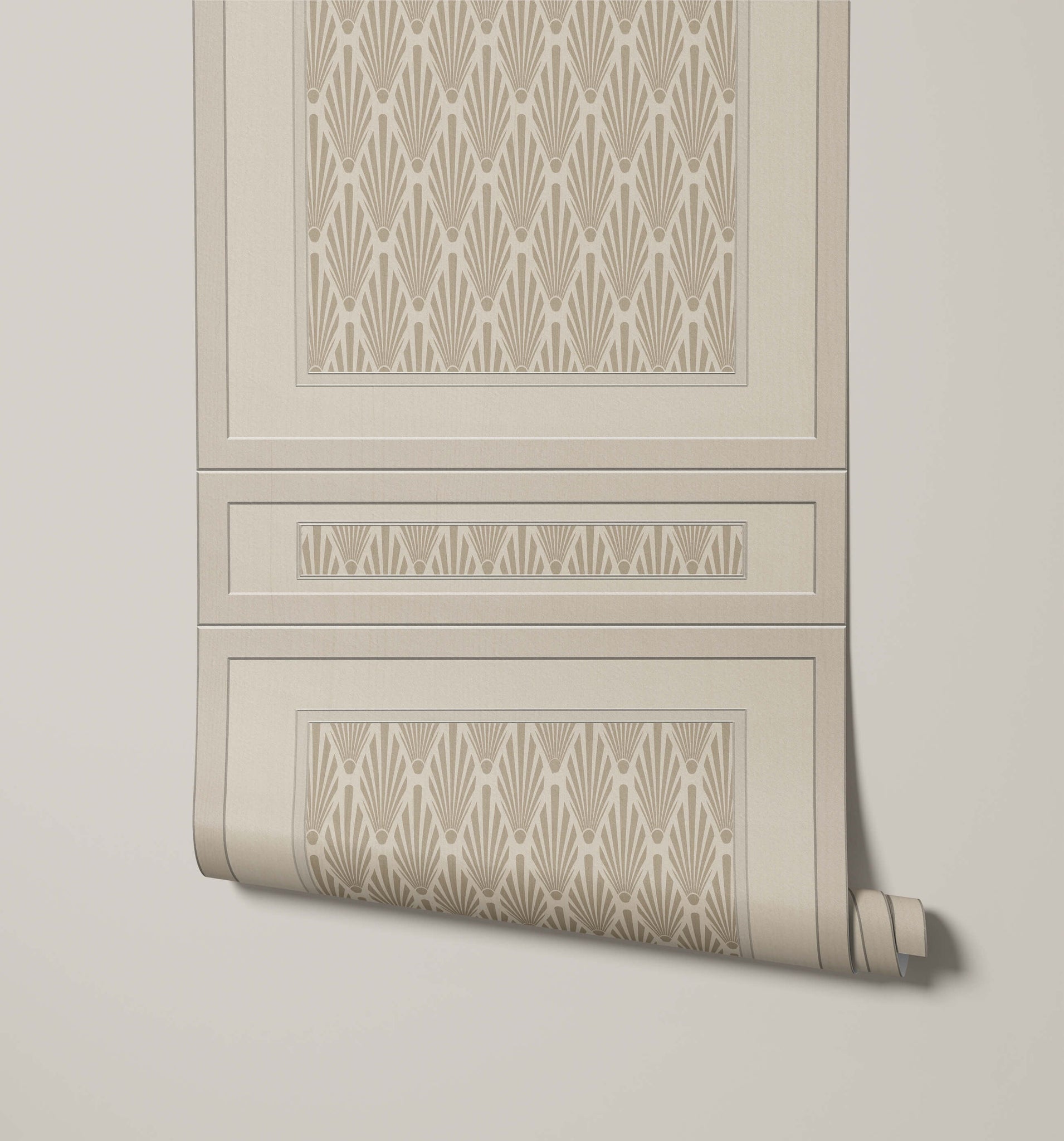 This 3D wood panelling wallpaper features an embedded art deco pattern for something super luxurious. The pattern combined with the faux panelling make this design a unique choice for a modern art deco scheme.