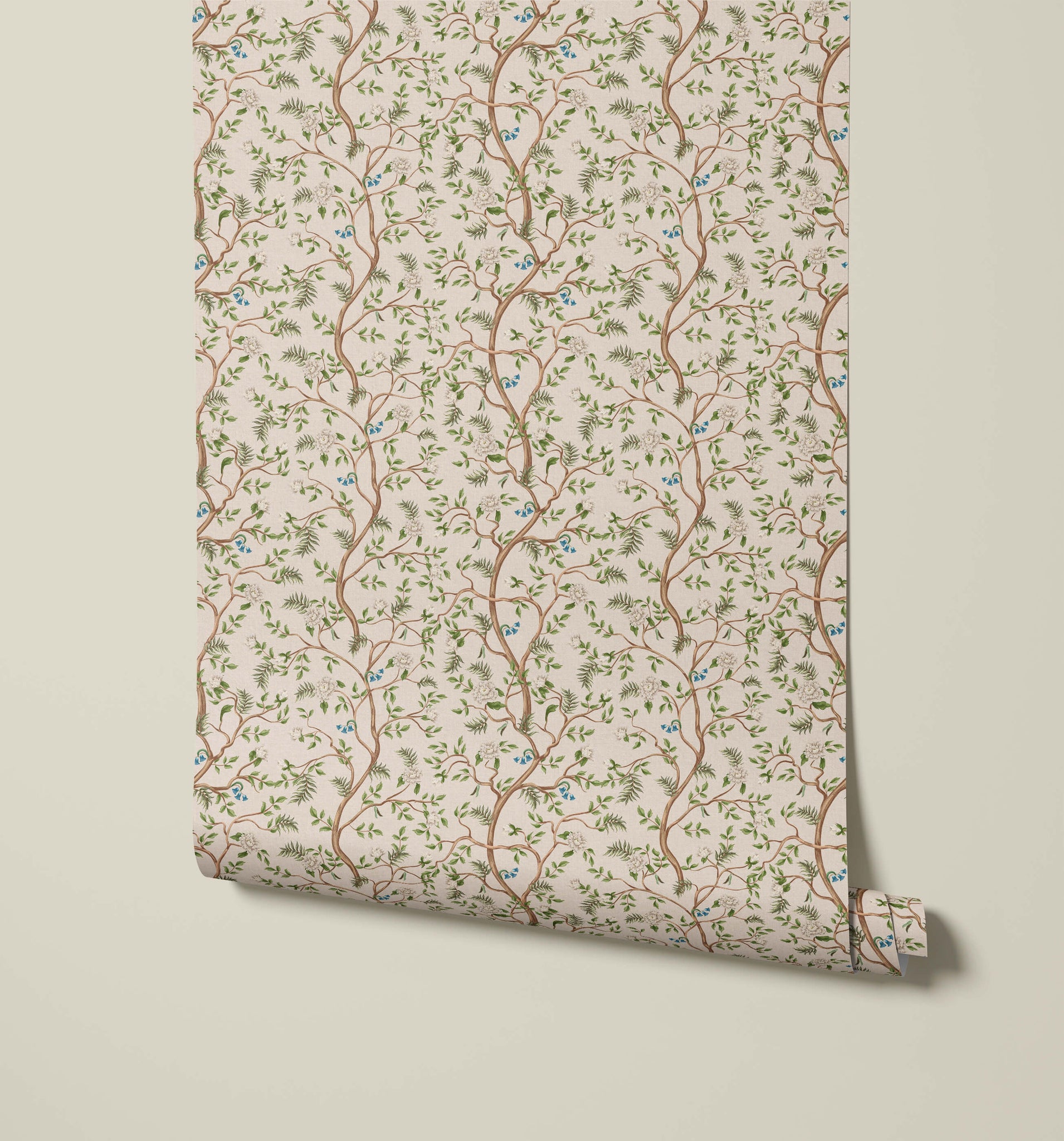 The Asian tree wallpaper brings a sense of natural elegance and tranquillity to any space, with its delicate depiction of slender branches gracefully winding across the backdrop. The intricate detailing of leaves and blossoms captures the beauty of a serene garden, while small blue birds perch quietly among the branches, adding a touch of life and charm to the design. The flowing lines of the tree branches create a rhythmic, organic pattern that evokes a sense of balance and harmony, reminiscent of traditional Asian art. This wallpaper is perfect for creating a peaceful, nature-inspired atmosphere in any room, making it ideal for bedrooms, living spaces, or areas where a calming, sophisticated aesthetic is desired. The Asian tree wallpaper brings the beauty of the outdoors indoors, transforming your space into a tranquil retreat filled with the grace and serenity of nature.
