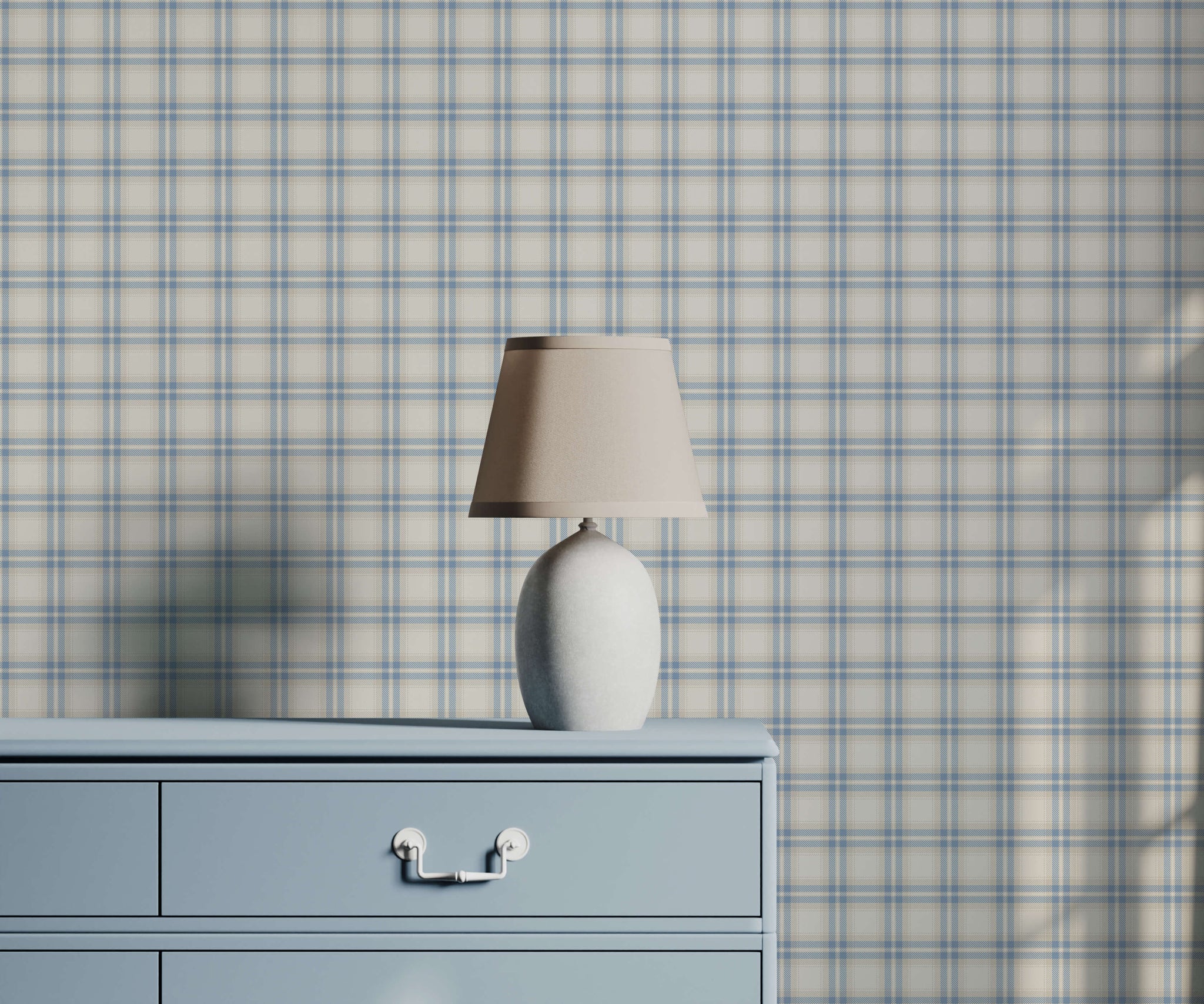 The rhythmic, continuous nature of the check plaid wallpaper pattern provides a casual, homespun elegance. It is an excellent choice for creating a cozy, inviting atmosphere in bedrooms, studies, or kitchen areas, functioning beautifully as both a feature element and a background texture. The design is a versatile option for adding traditional warmth and character without dominating the décor.