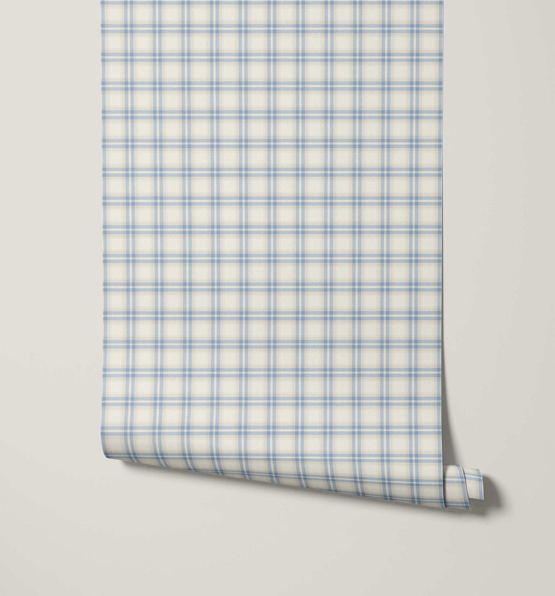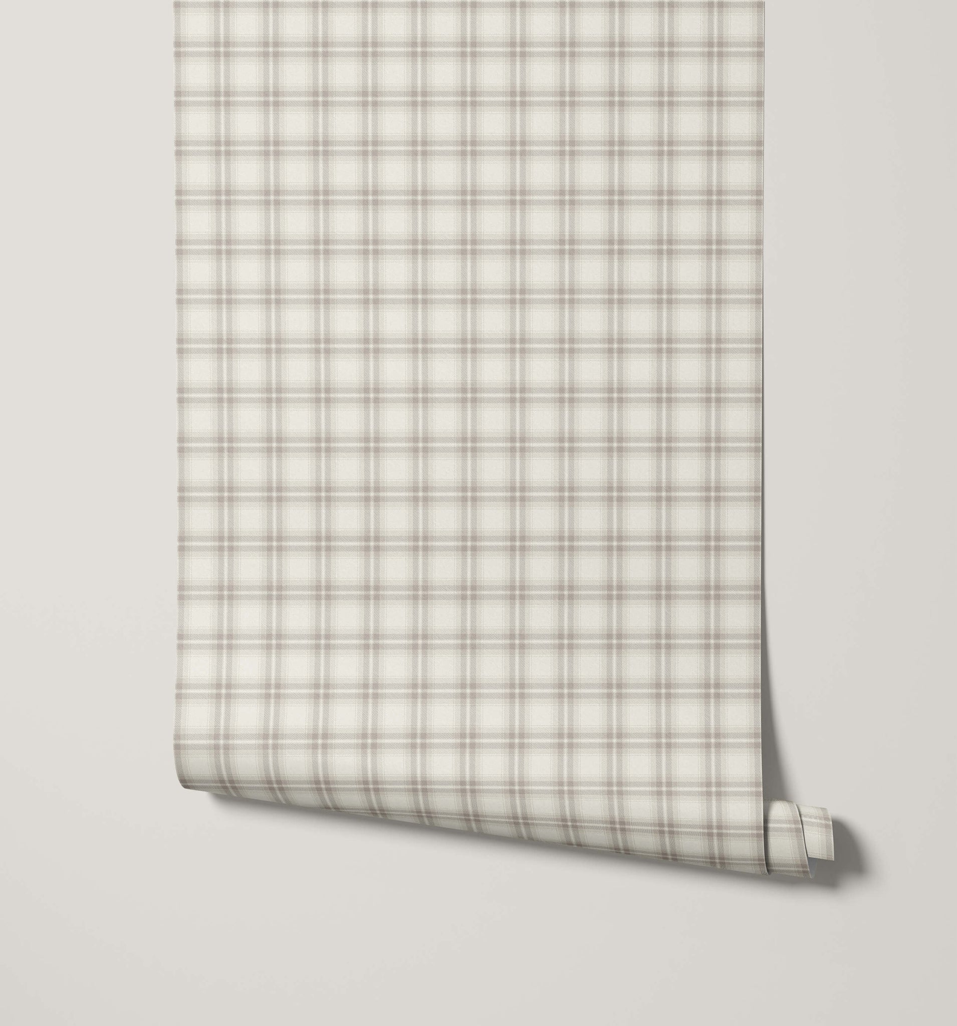 The check plaid wallpaper introduces a timeless, comforting geometric motif, perfect for adding a touch of rustic or traditional appeal to any space. The design features an intersecting network of lines, creating a structured, all-over pattern of squares and rectangles. The precise arrangement and slight variation in the intersecting line weights give the wallpaper a soft, woven-textile texture.