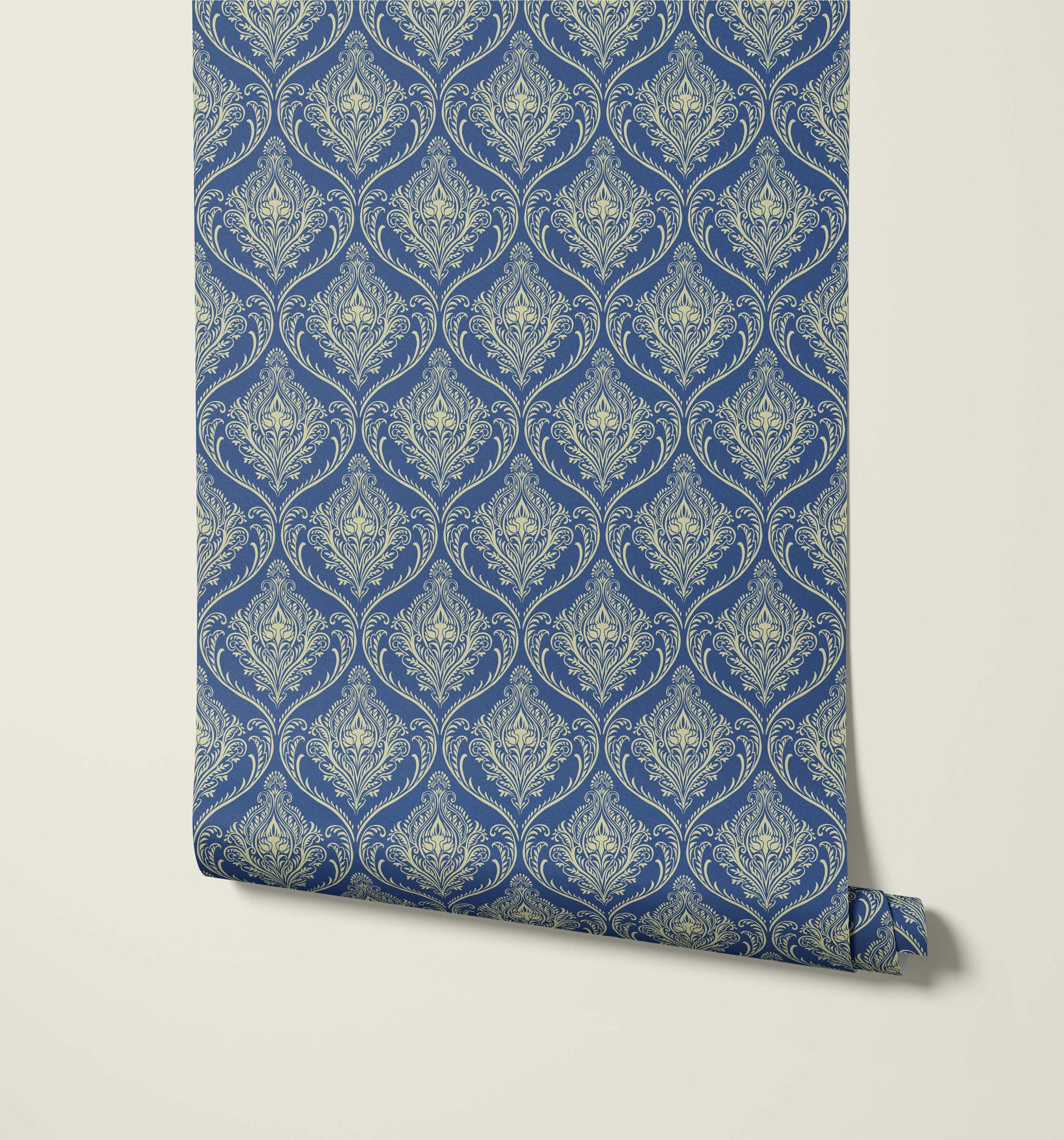 The classic damask wallpaper brings timeless elegance and grandeur to any space with its intricate, symmetrical design. Each motif is richly detailed, featuring graceful scrollwork and delicate floral elements arranged in a repeating pattern that exudes sophistication. The design reflects the traditional beauty of damask, creating a sense of refinement and luxury reminiscent of historic palaces and stately homes. The structured repetition of the pattern adds a sense of order and harmony, while the ornate details bring a touch of artistry and opulence. Ideal for creating a formal, regal atmosphere, the classic damask wallpaper is perfect for living rooms, dining areas, or spaces where you wish to introduce a sense of traditional charm and timeless style. This wallpaper elevates any interior with its luxurious feel and intricate beauty, offering a perfect blend of tradition and elegance.