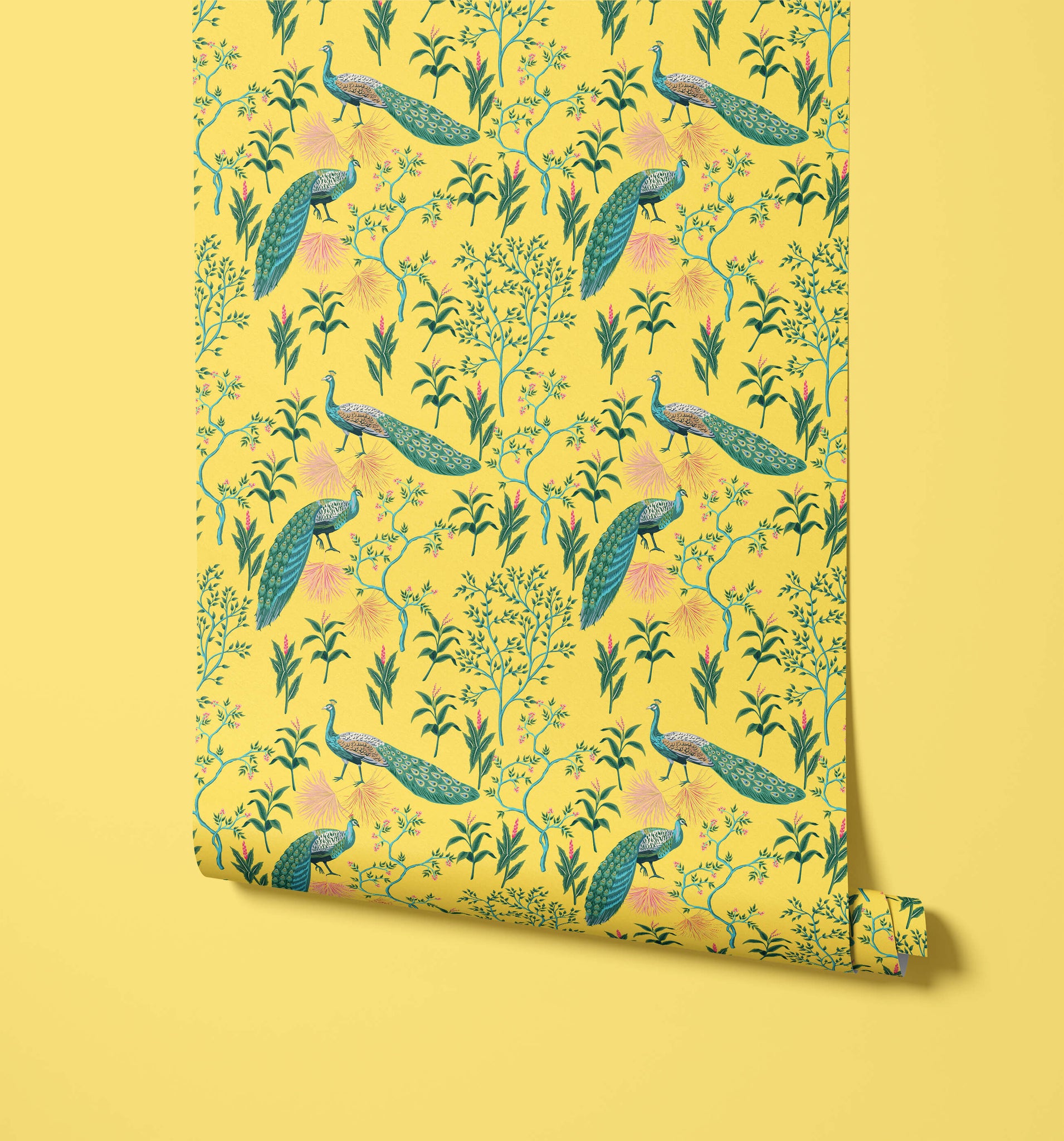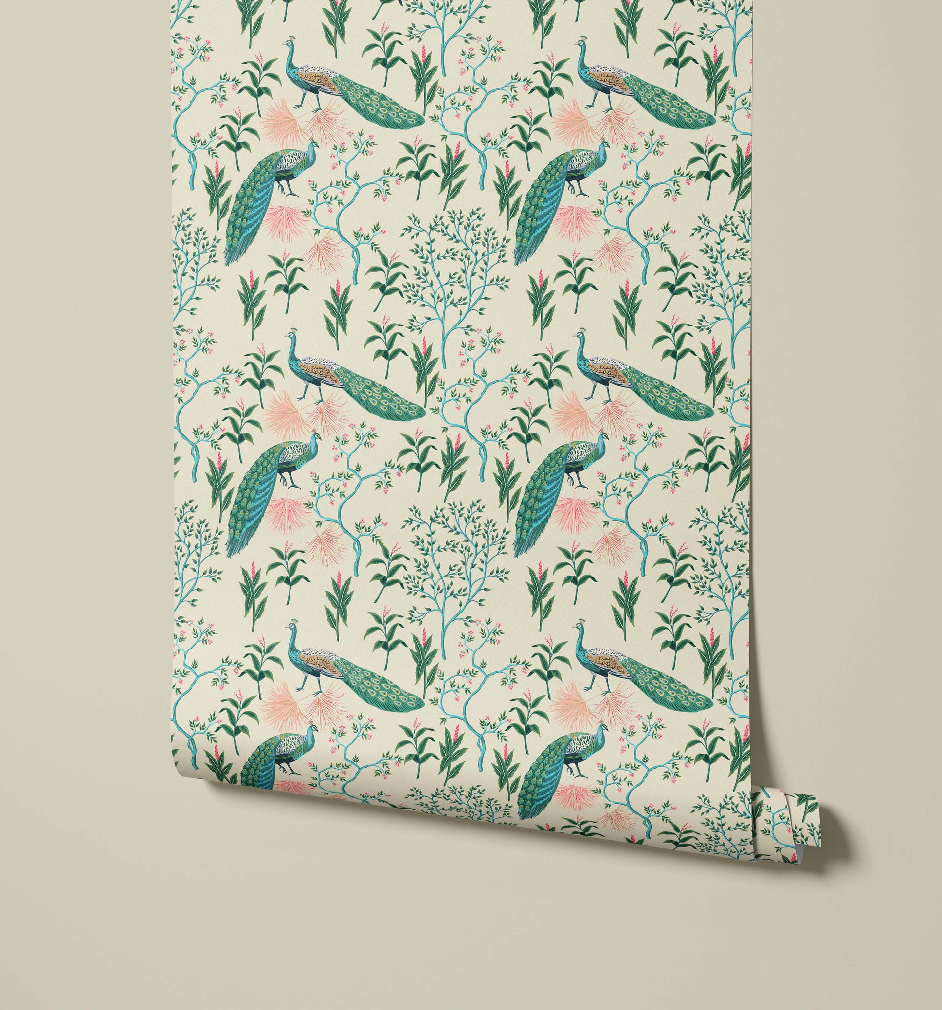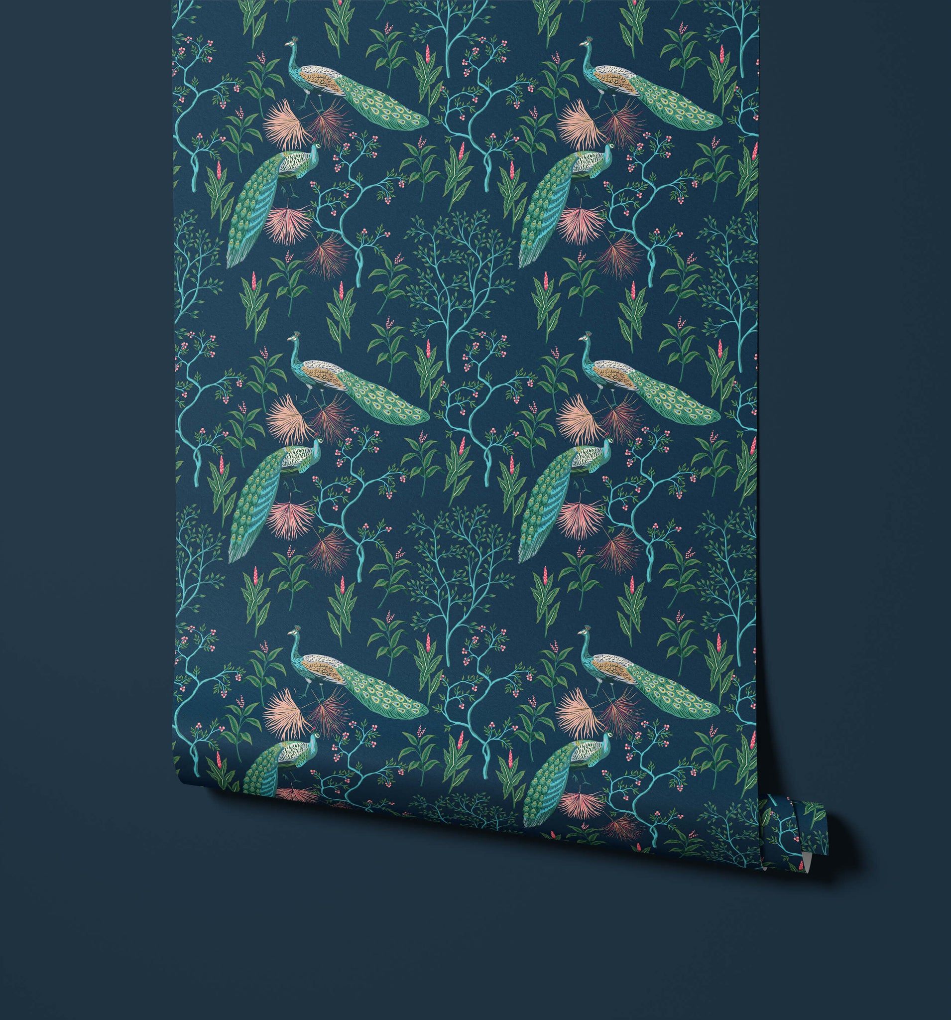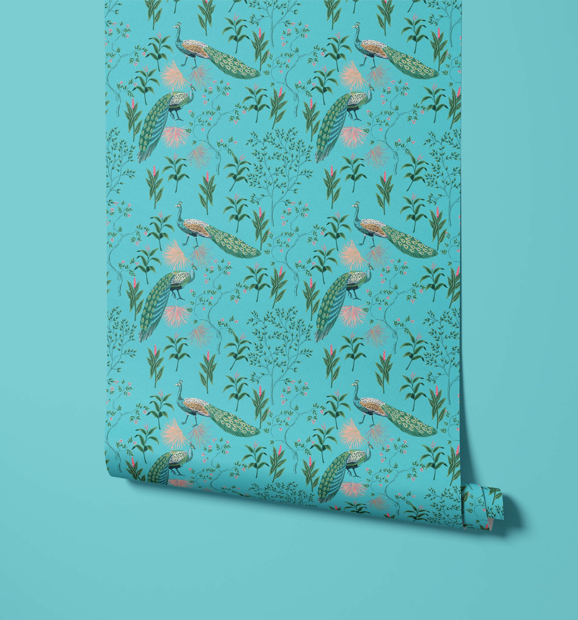 Elevate and enrich your space with our colourful peacock wallpaper. This captivating oriental-inspired design goes beyond ordinary decor, transforming any space into a vivid and lively haven. The rich hues of the peacock feathers add a burst of colour that invigorates your surroundings, creating a dynamic visual impact.