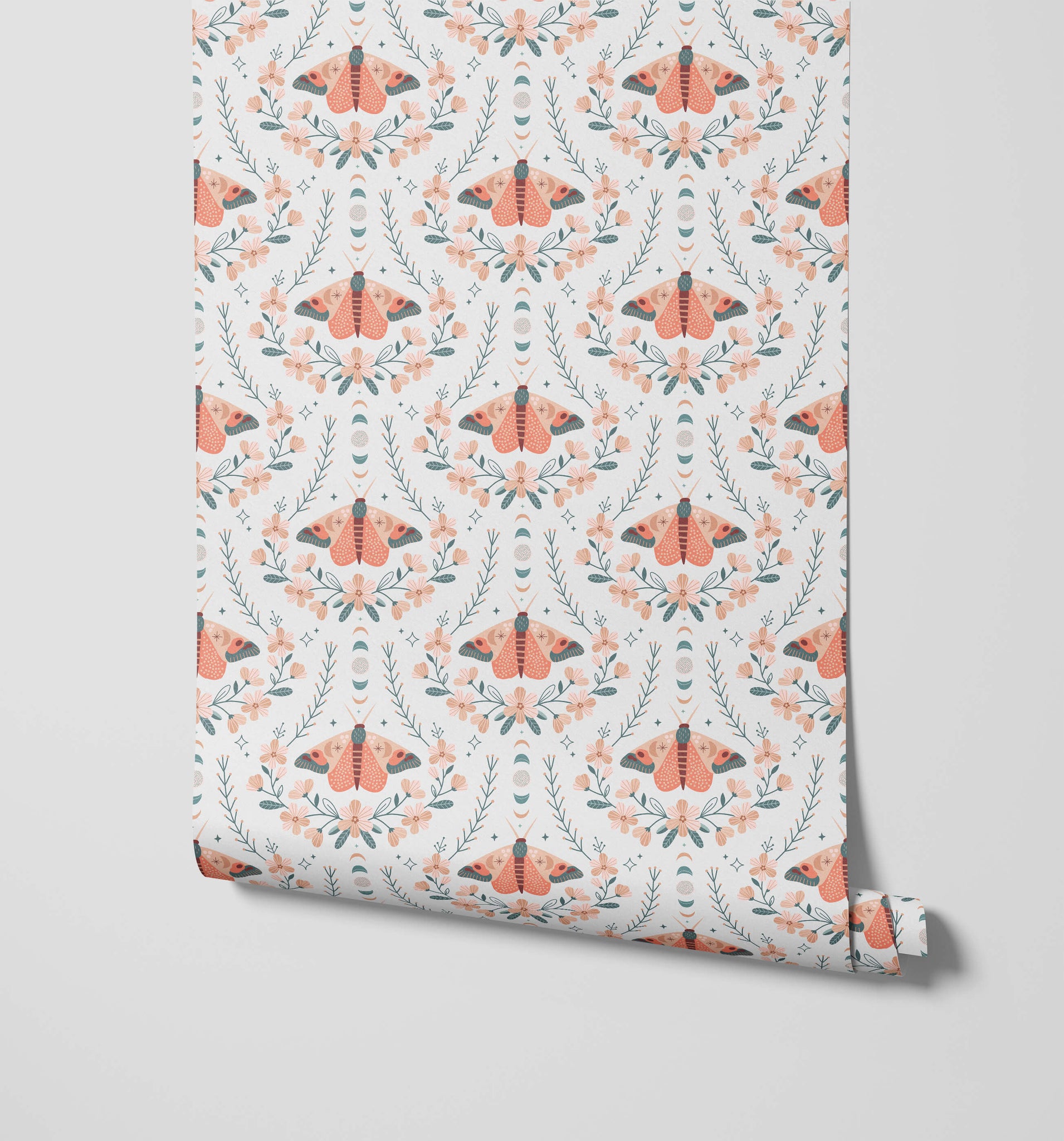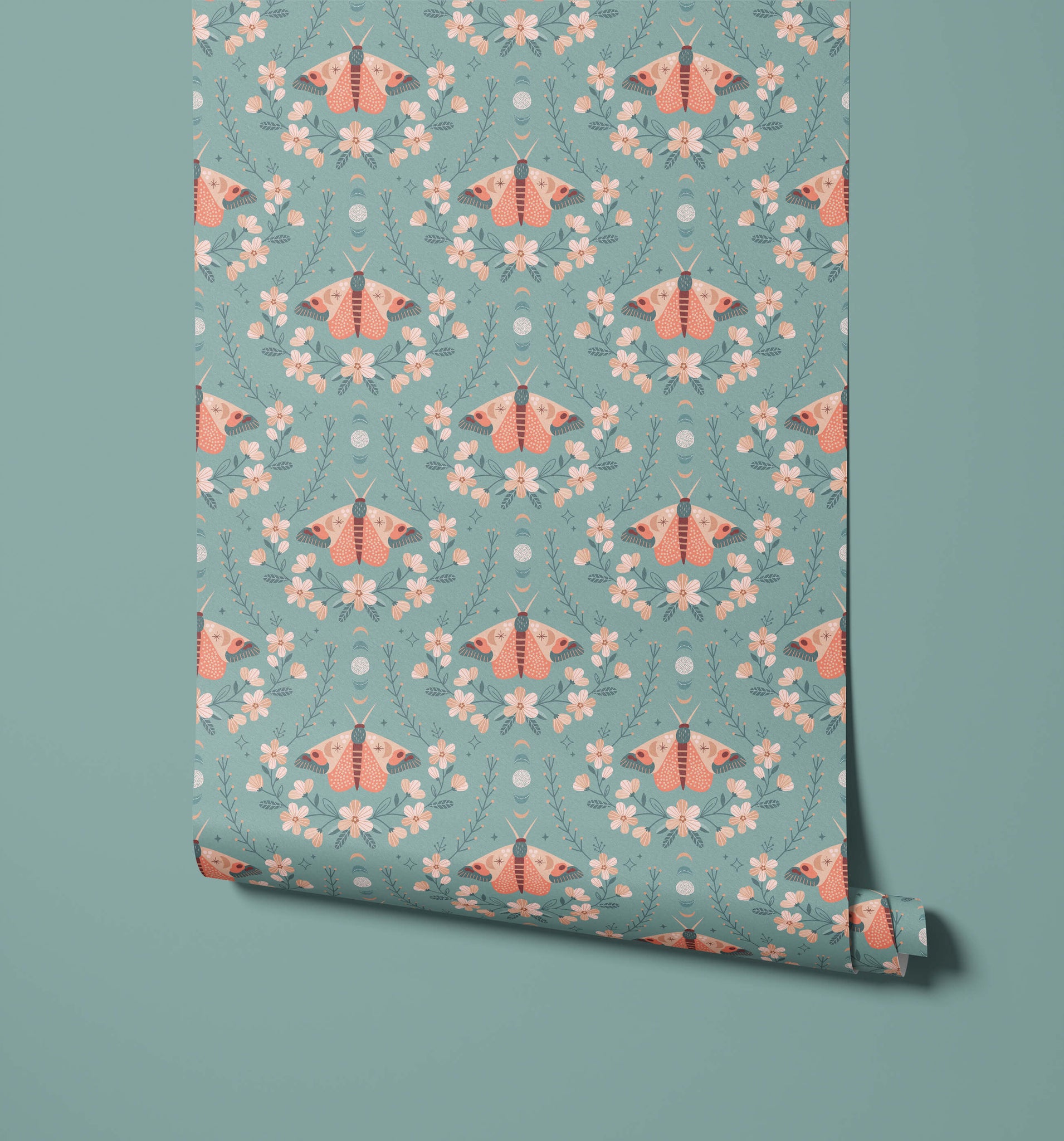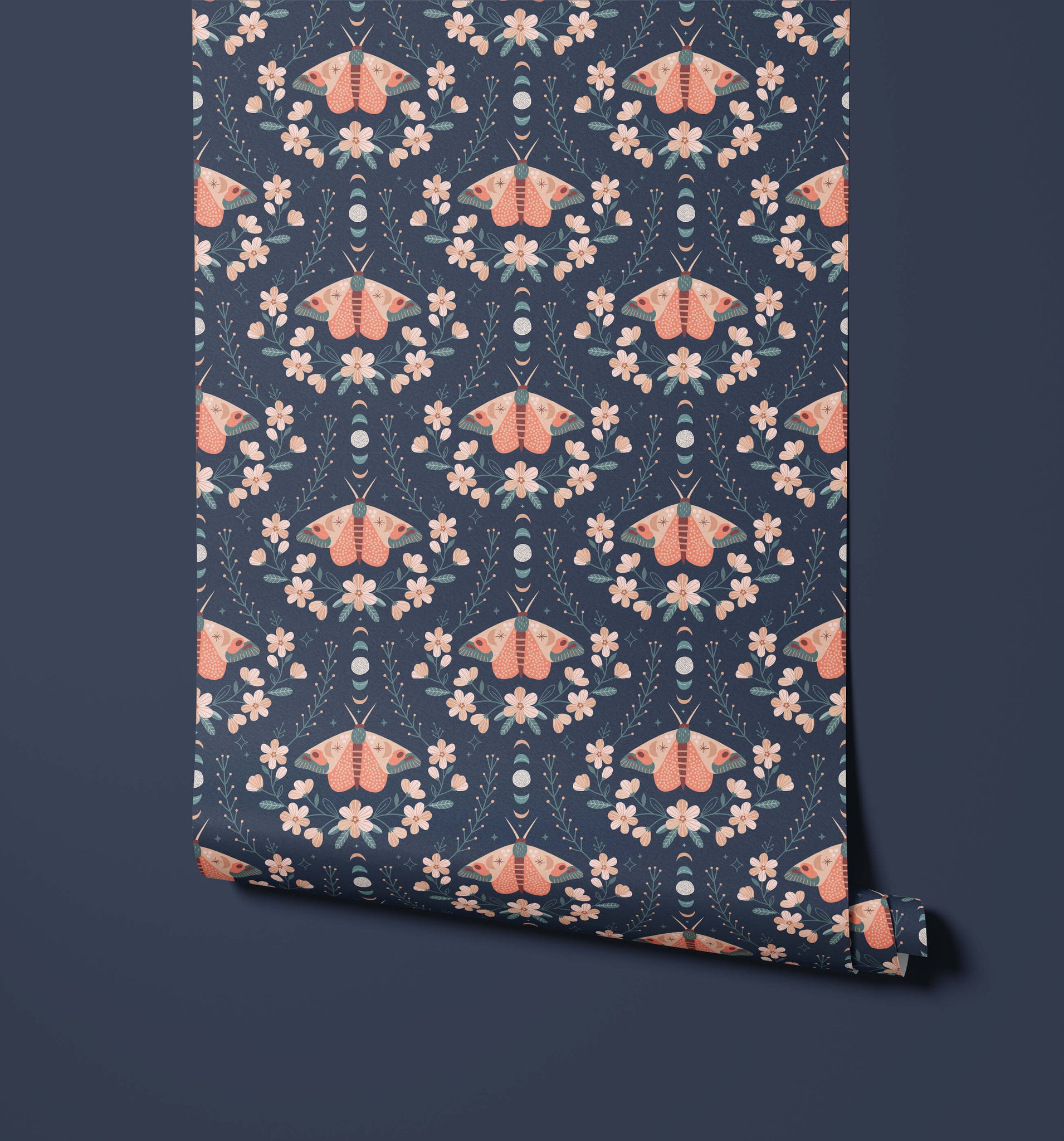 This cute flower and butterfly wallpaper is designed with a good balance of a modern and vintage aesthetic. The butterflies and flowers have been naively illustrated for a cute style. It's a colourful design, available in blue, pink, purple, black and more.