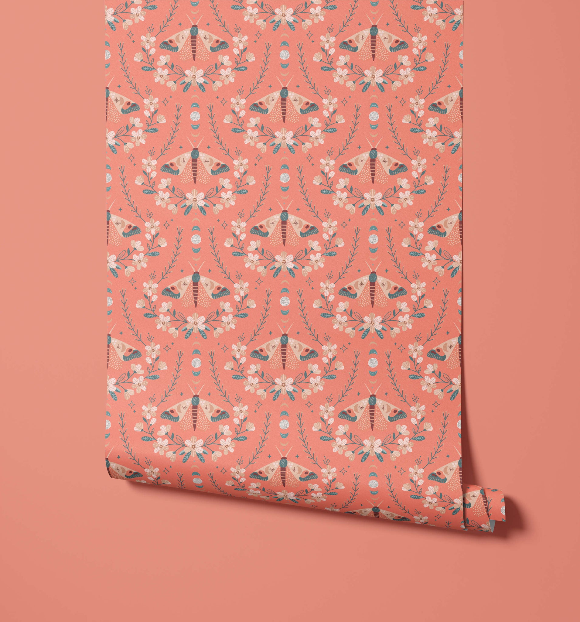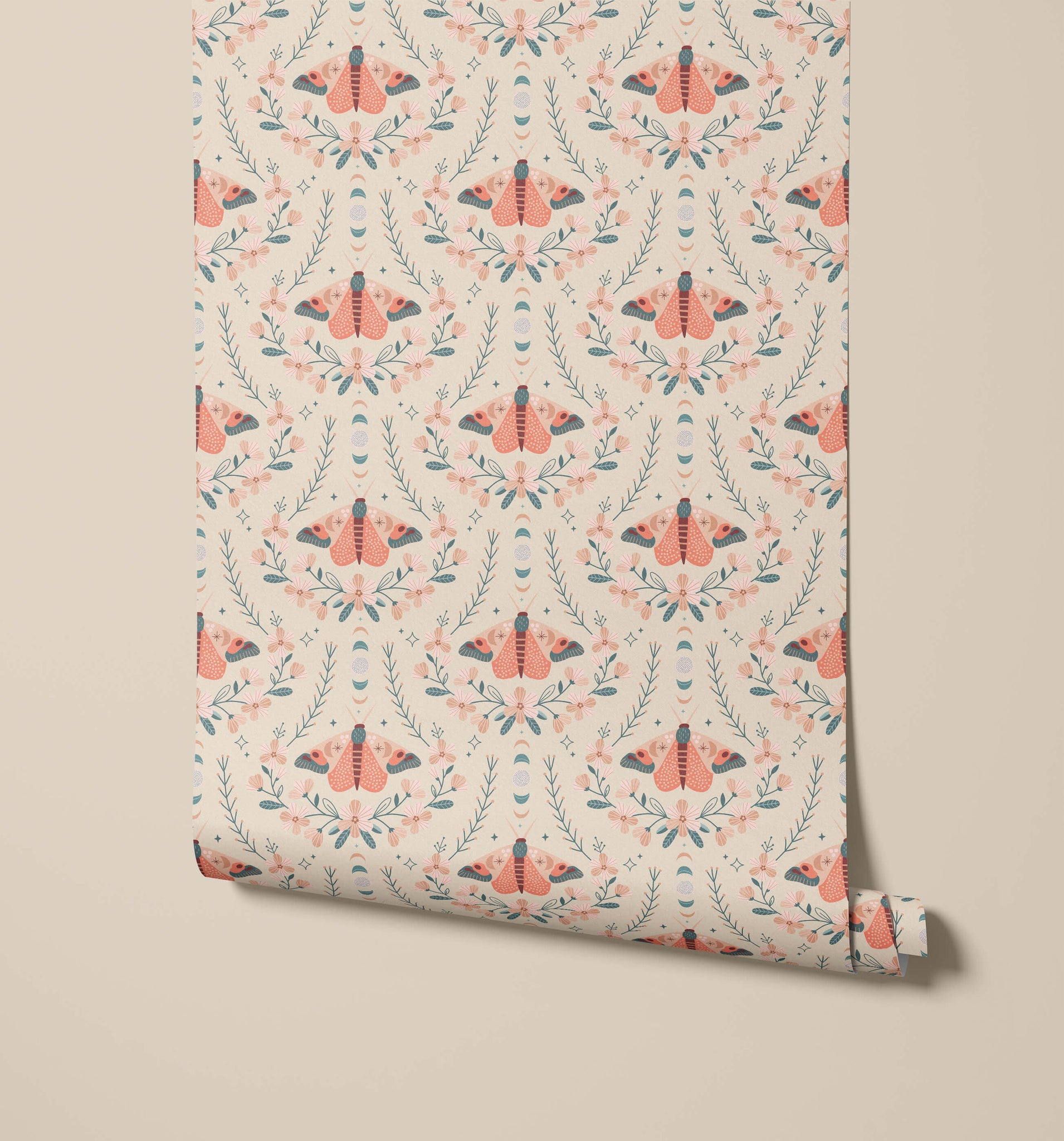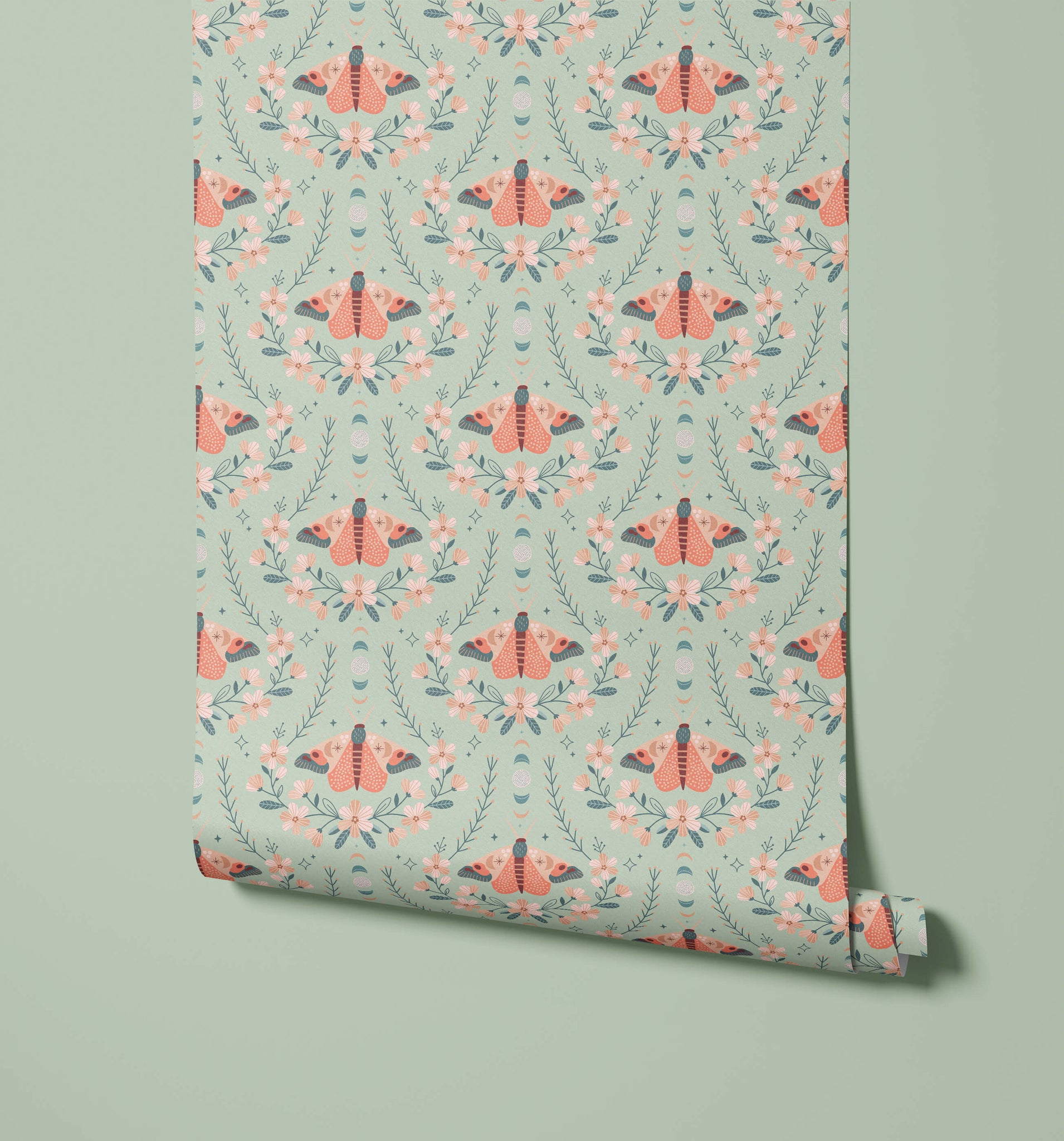 This cute flower and butterfly wallpaper is designed with a good balance of a modern and vintage aesthetic. The butterflies and flowers have been naively illustrated for a cute style. It's a colourful design, available in blue, pink, purple, black and more.