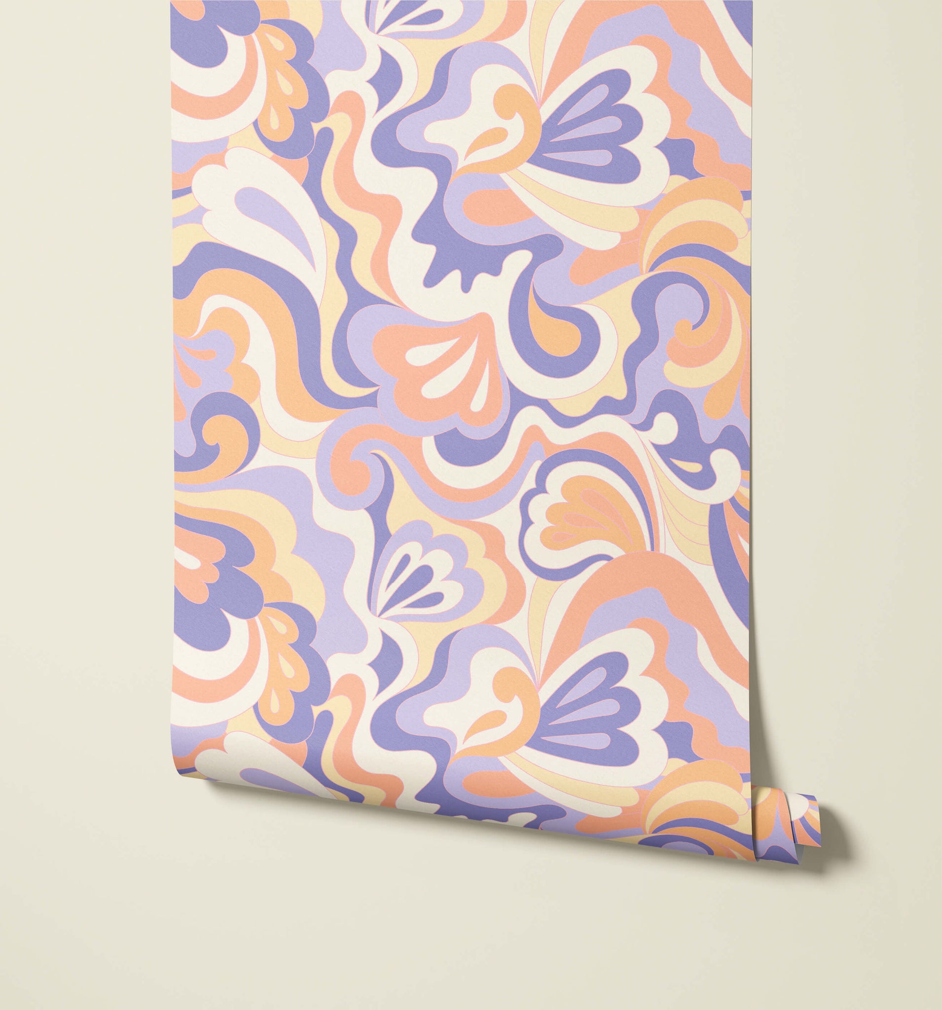 Introducing our groovy abstract wallpaper, a burst of retro-inspired vibrancy for your space. This lively design showcases bold abstract fluid shapes in a delightful palette of peaches, yellows, and purples. The dynamic interplay of colours and forms creates a visually captivating and energetic atmosphere, perfect for injecting a touch of nostalgia into bedrooms, living spaces, or any area seeking a groovy appeal. Carefully crafted, the groovy abstract wallpaper transforms walls into a vibrant canvas of retro charm.