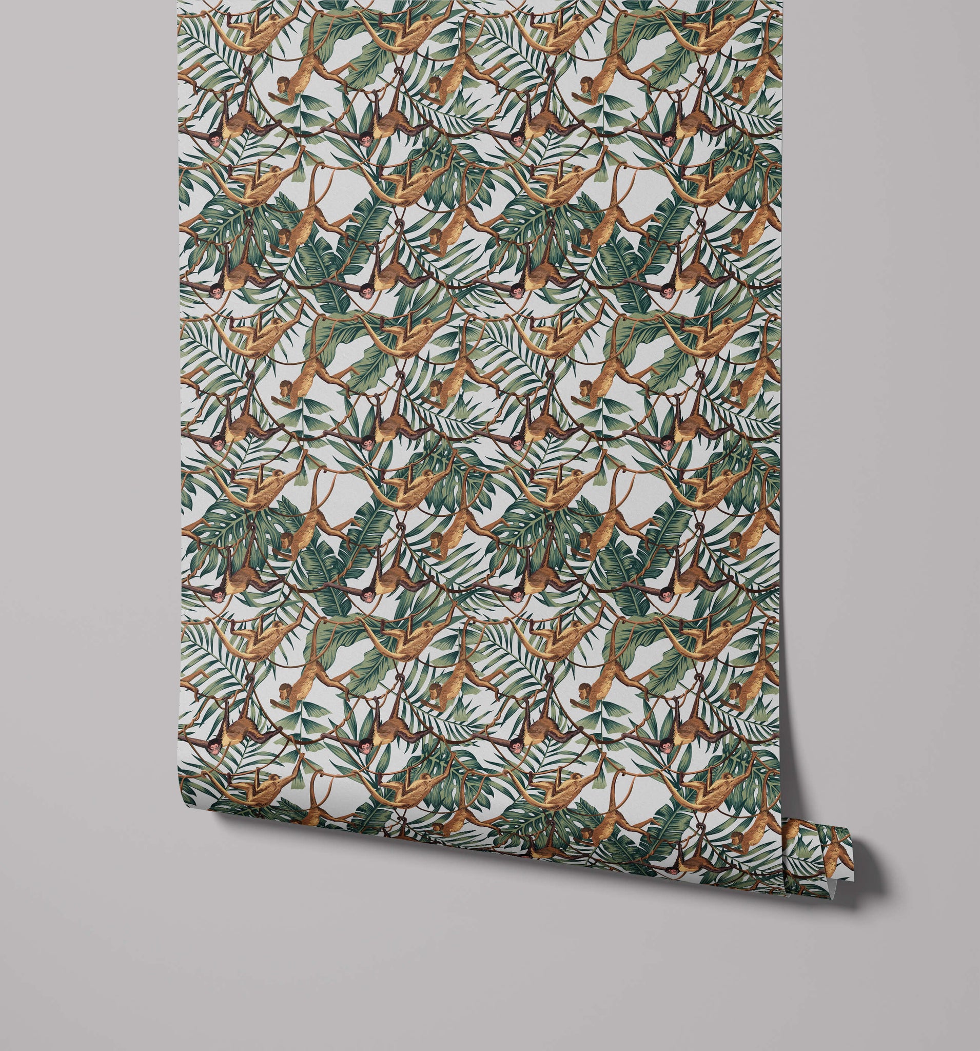 This monkey wallpaper is not for the faint-hearted. It's busy and bold, which is great for creating a lively and impactful space while bringing a sense of the jungle into your scheme.