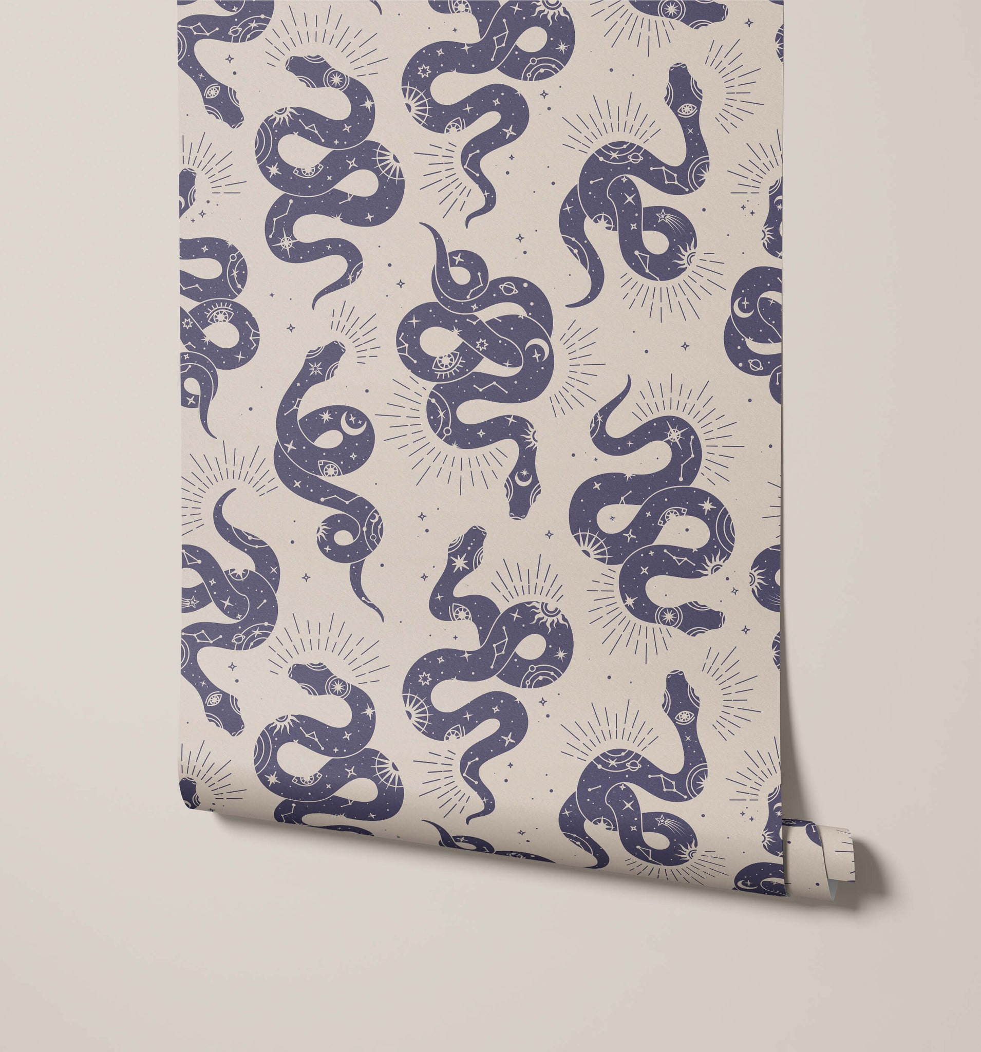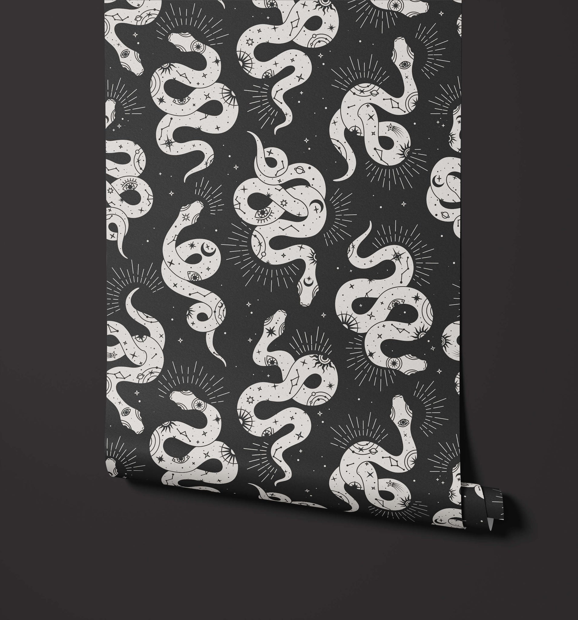 This occult snake wallpaper could be the perfect choice if you're looking to add a unique and eye-catching element to your space. The twisted bodies of the snakes arrange themselves to come together in a seamless pattern and create the background for the intricate occult symbols that help to make this design so different. Available in green, blue, beige and black & white, this wallpaper is flexible enough to be used in almost any space, from bedrooms right through to living areas.