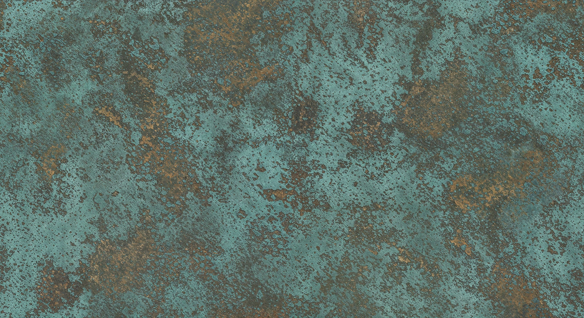 This patina-effect wallpaper mural captures the captivating beauty of aged copper, blending vibrant teal tones with warm, earthy rust for a strikingly organic look. Its richly textured design recreates the natural process of oxidation, transforming your wall into a bold statement piece that exudes character and timeless charm. The interplay between cool turquoise hues and deep bronze accents gives the mural a dynamic energy, making it perfect for interiors that embrace both modern sophistication and rustic authenticity.
