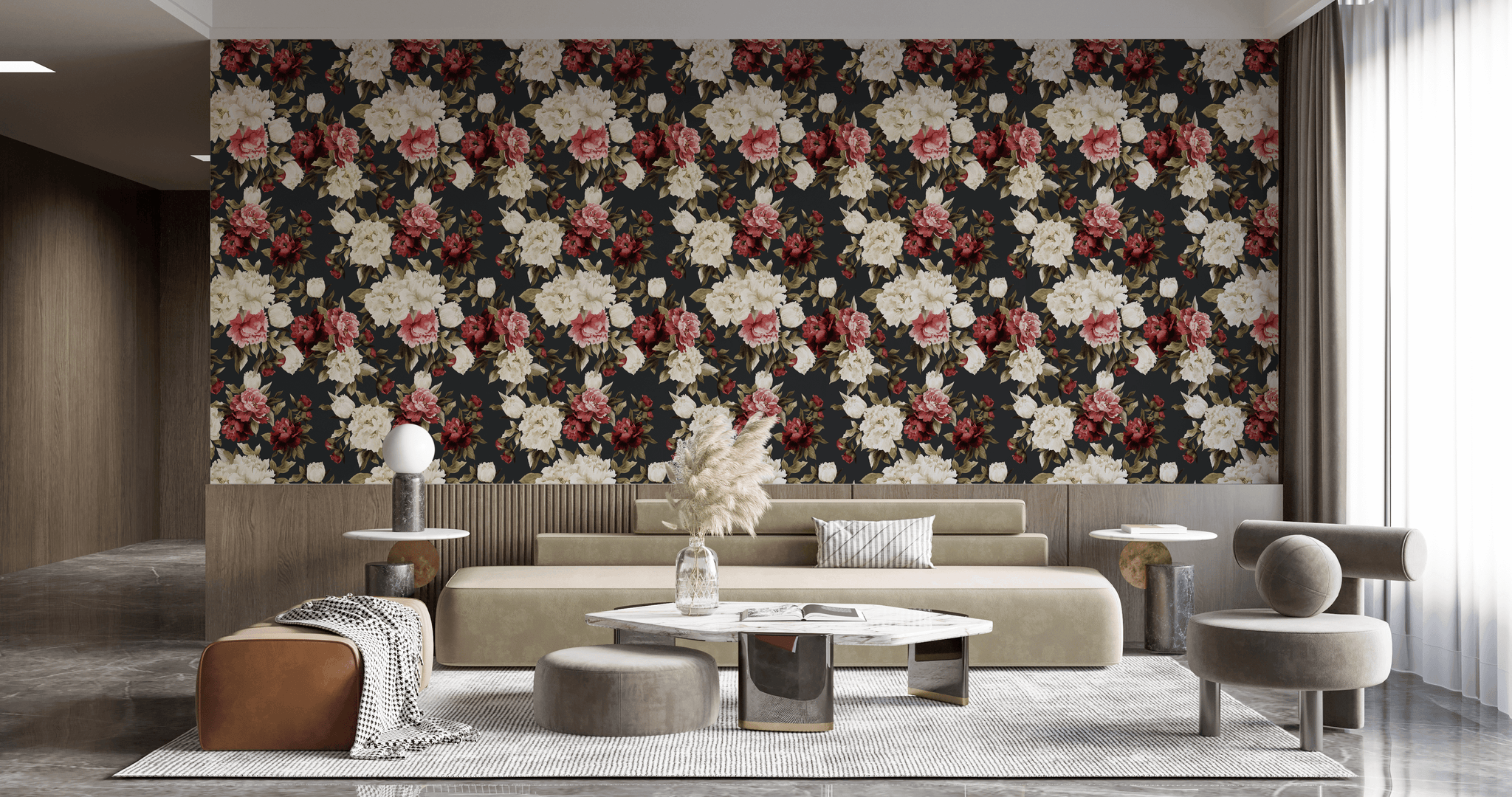 This floral wallpaper delivers maximum impact with its rich detail and large scale. Great for maximalist settings, this modern floral design will be sure to capture attention. Available in both dark and light options, it's a versatile floral print that pulls no punches.