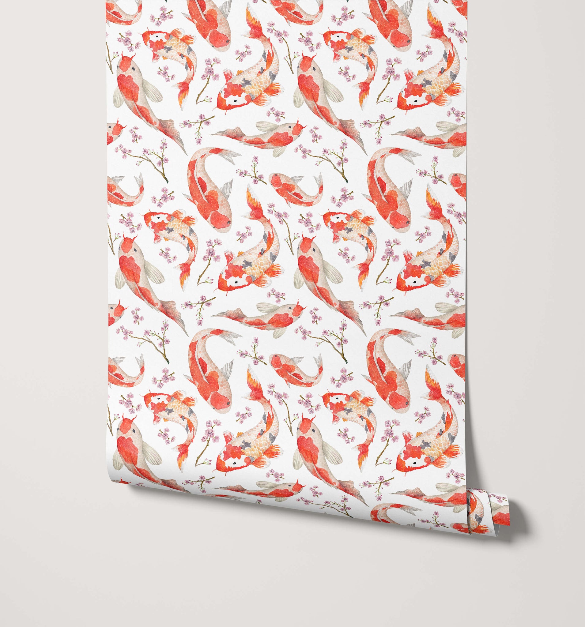Introducing the vibrant allure of our red koi wallpaper. This captivating design seamlessly blends the symbolic beauty of red koi fish with a repeating motif, creating a visually dynamic and harmonious focal point for your walls.