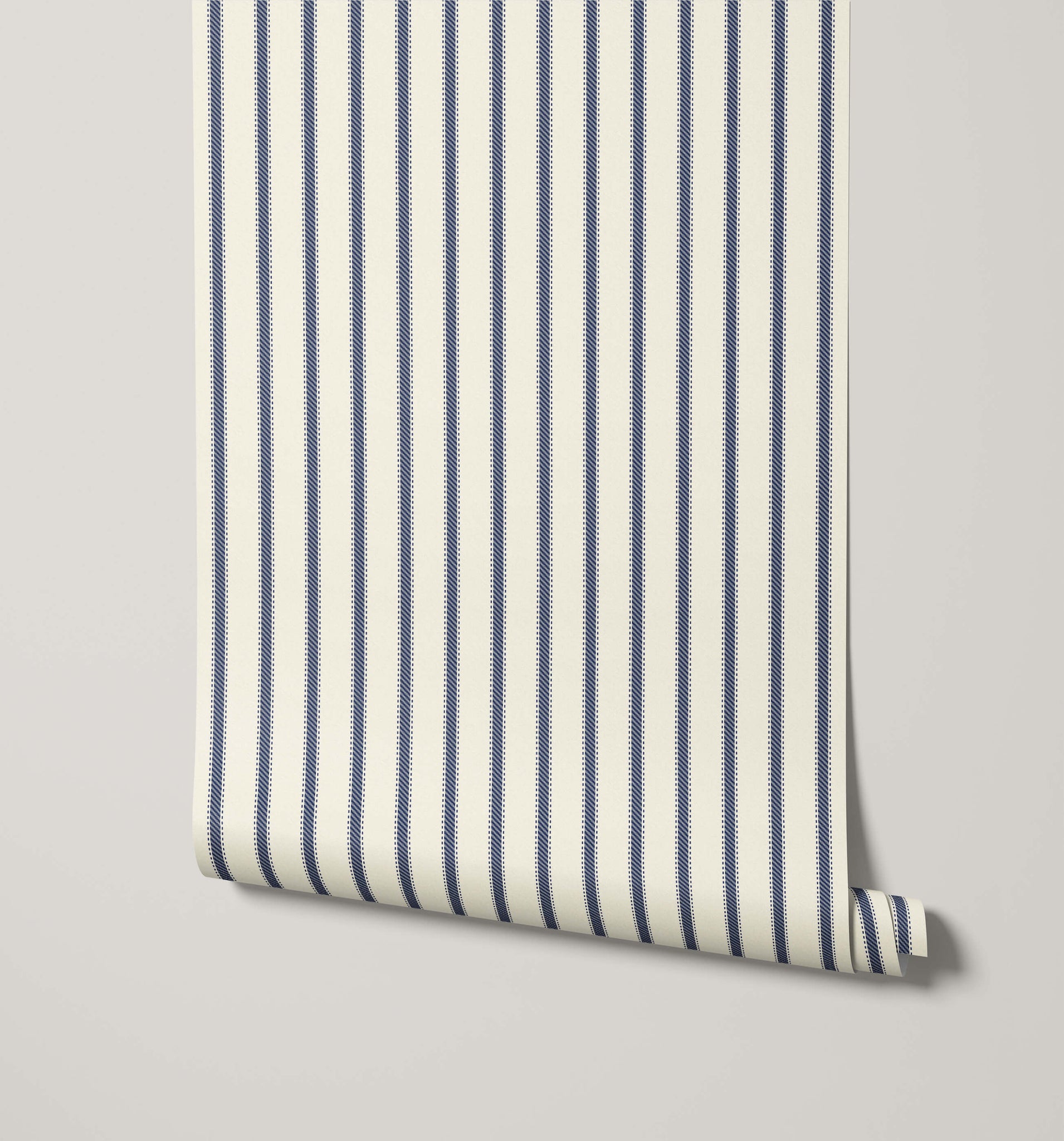The simple ticking stripe wallpaper is a classic and comforting design, drawing inspiration from traditional woven fabrics. The pattern features finely rendered vertical stripes that are evenly spaced, alternating between narrow bands and the continuous background field. The stripes themselves are given a subtle, textural detail, mimicking the close-knit structure of homespun cloth.