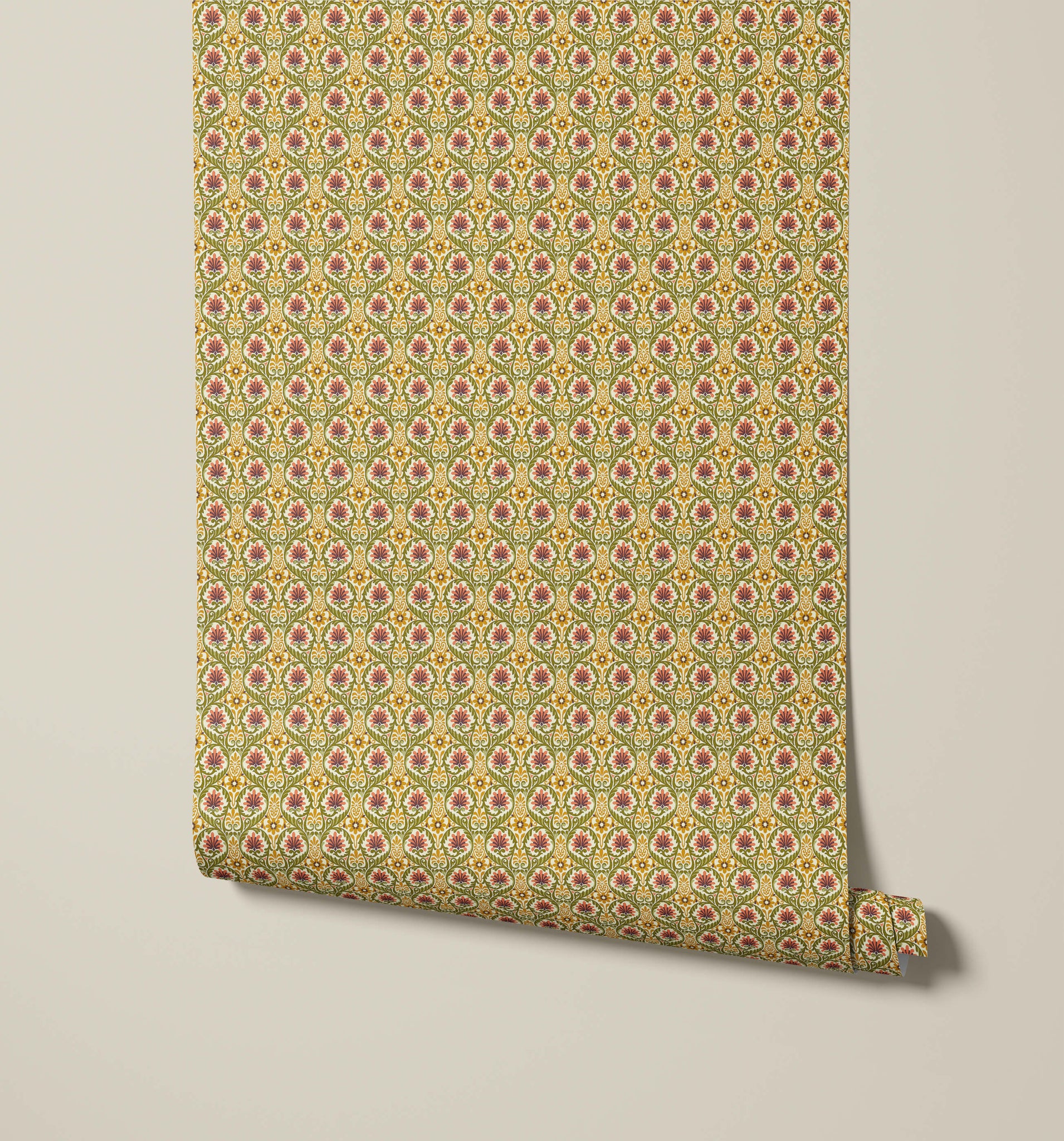 The small vintage pattern wallpaper evokes a timeless charm with its delicate and intricate design. Each motif is carefully arranged to create a harmonious, repeating pattern that draws from classic styles of the past. The intricate floral elements, paired with subtle flourishes, bring an air of nostalgic elegance to the space. Its refined structure and gentle detail make it perfect for creating a sense of vintage warmth and sophistication, while maintaining a light and inviting feel. This wallpaper is ideal for those looking to add a touch of historical charm to their interiors, blending effortlessly into both modern and traditional settings.