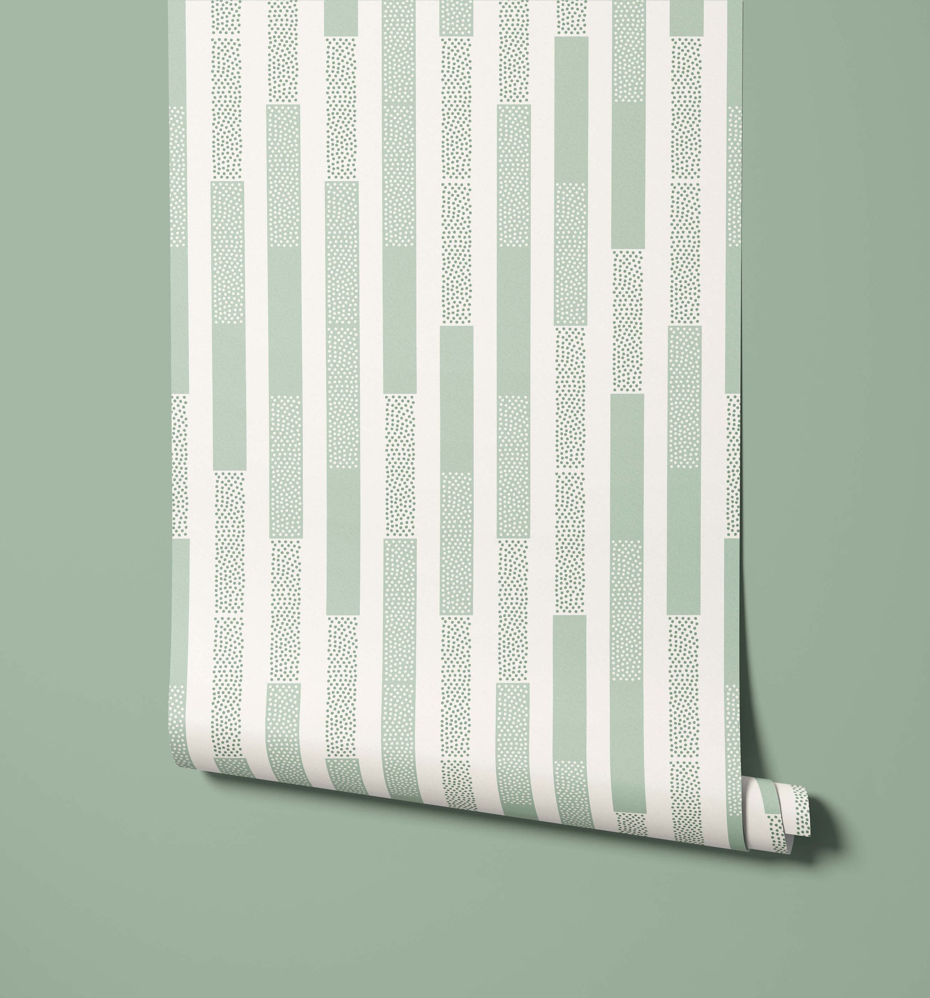 Stripes and polka dots are a classic combination and they come together beautifully within this design to create a traditional wallpaper pattern with a contemporary twist. We have kept the colours light and bright to further accentuate the cheerful aesthetic that this wallpaper brings.